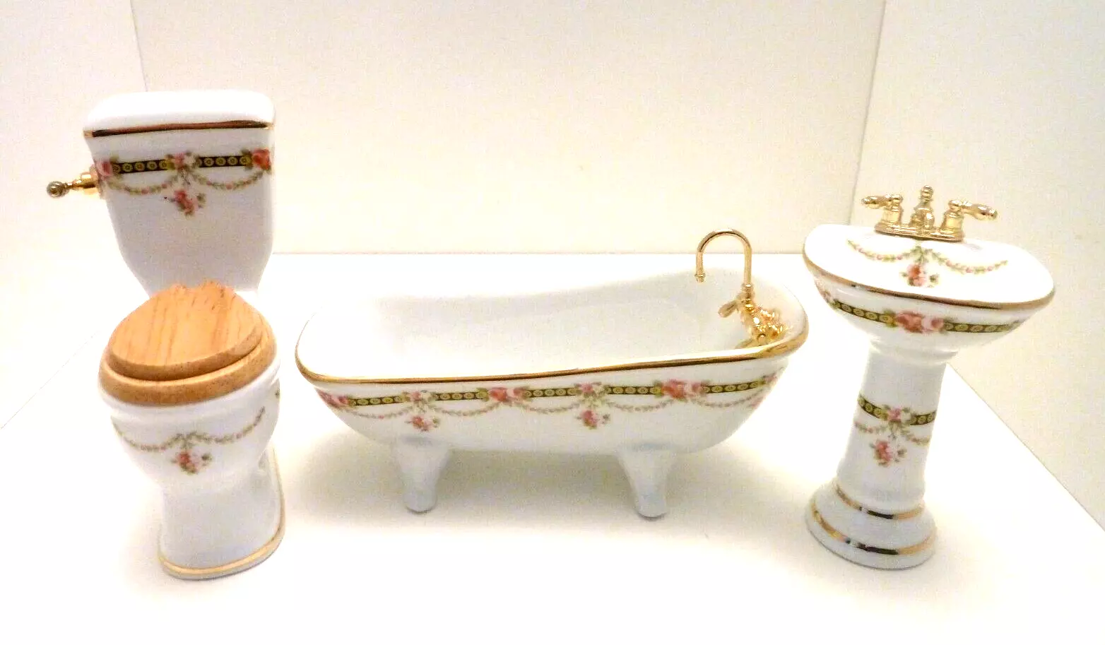 Dolls House Bathroom Set Victorian Rose Porcelain 3pc Miniature 1:12th Scale