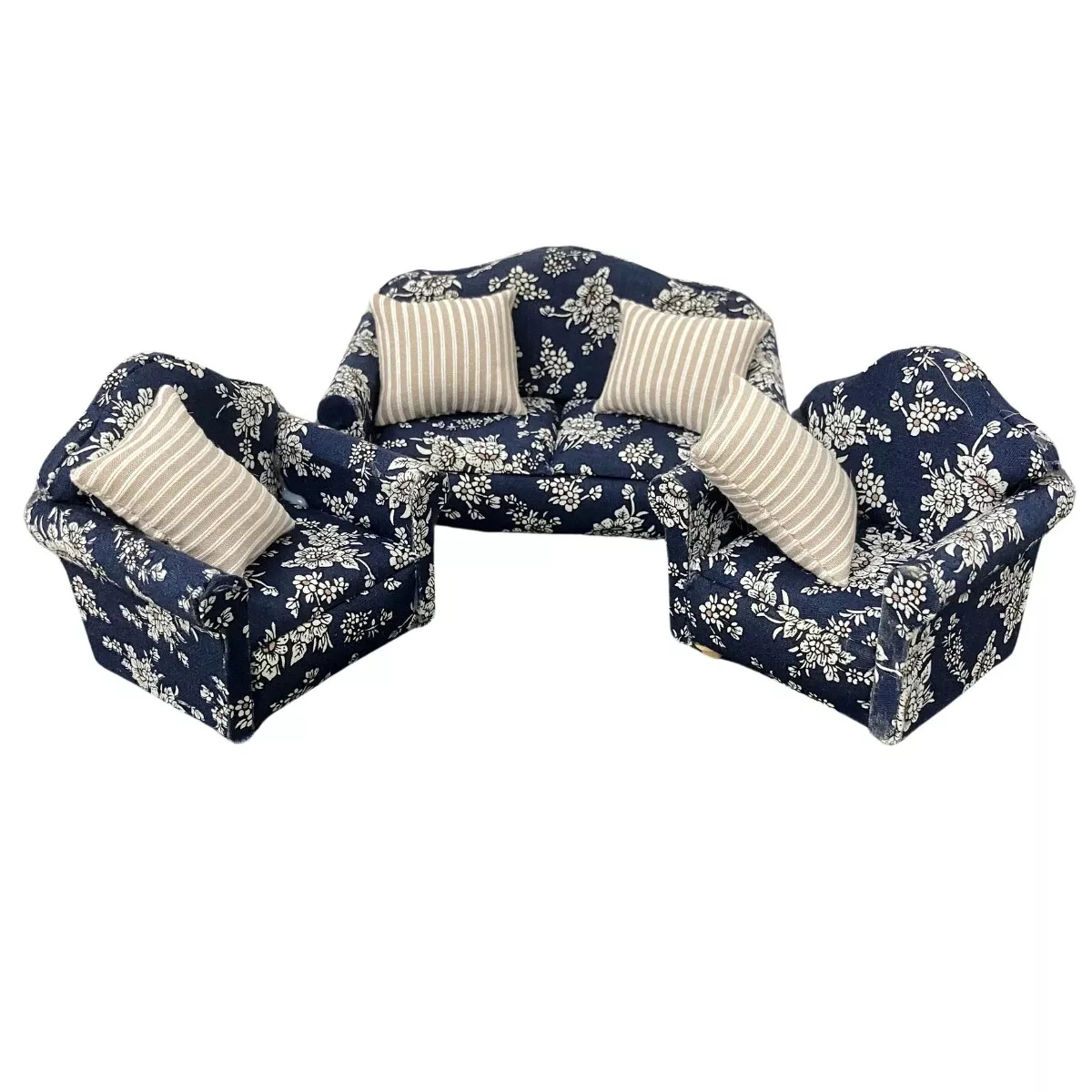 Dolls House Blue Floral Sofa & 2 Armchairs Furniture Set Miniature 1:12th Scale