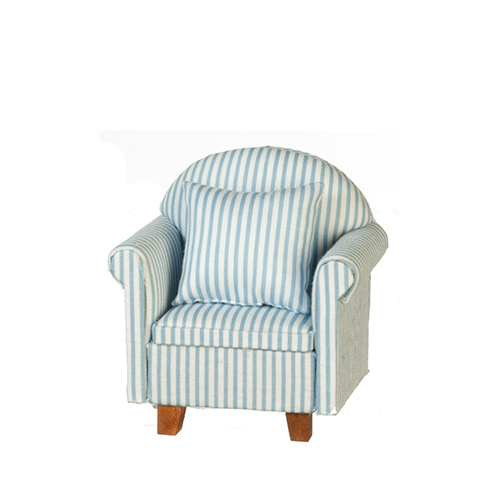 Dolls House Chair Blue and White Stripe Lounge Furniture Miniature 1:12th Scale