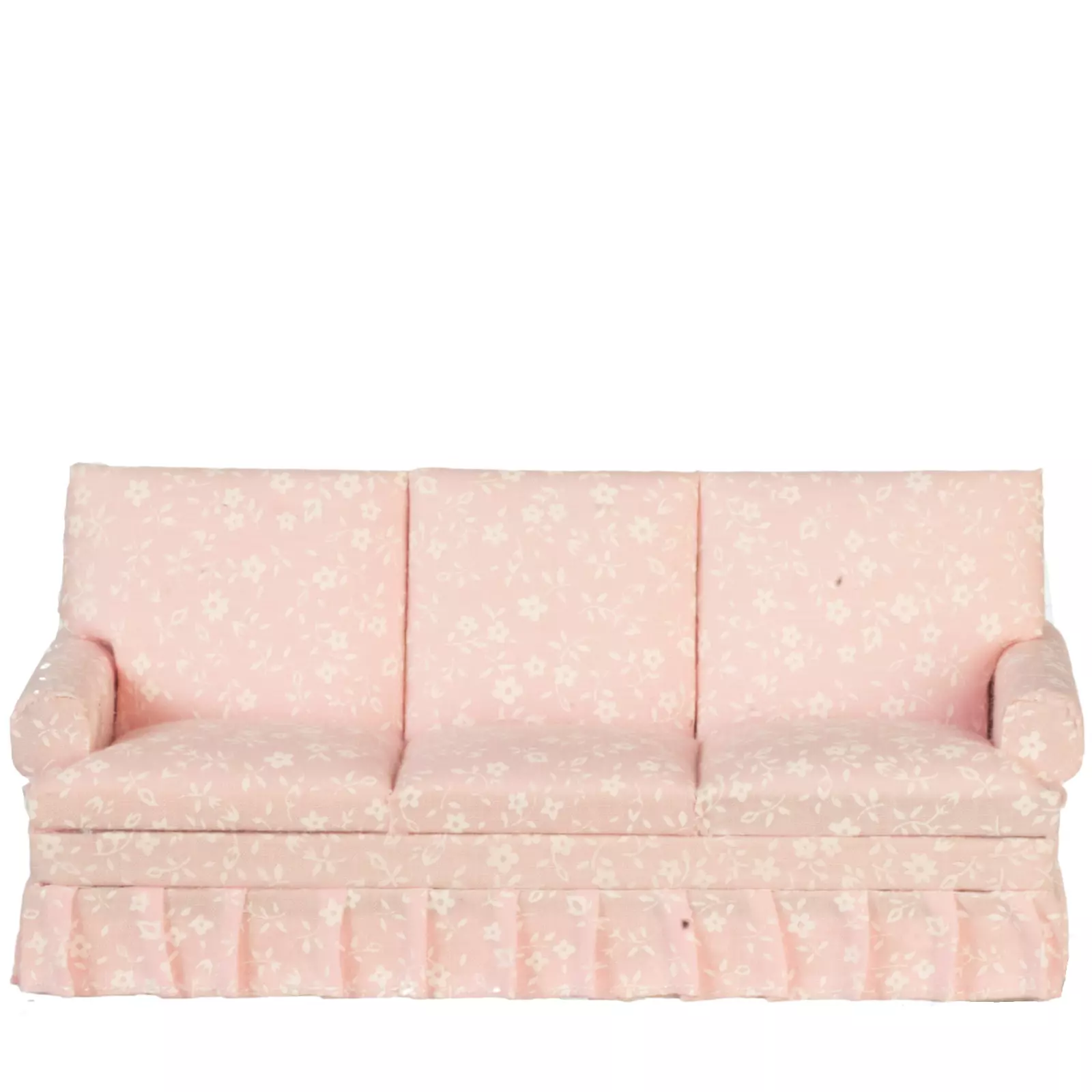 Dolls House Sofa 3 Seat Pink Floral Lounge Furniture Miniature 1:12th Scale