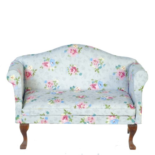 Dolls House Sofa Grey Floral Pattern Queen Ann Lounge Furniture Miniature 1:12th Scale
